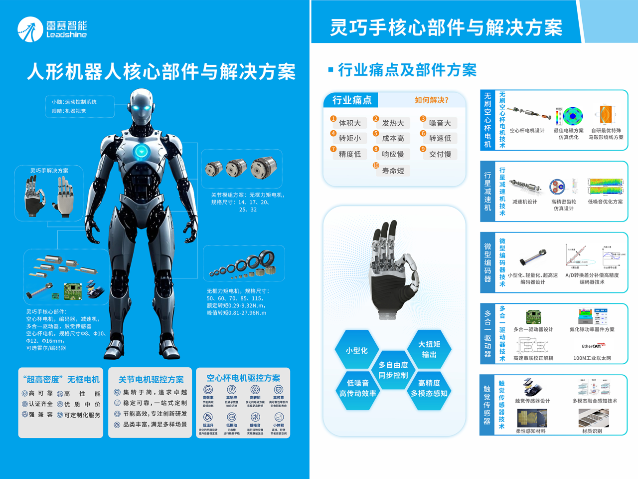 兩大精彩分享的背后,是雷賽智能堅實的戰(zhàn)略布局。公司依托上市公司在運動控制領(lǐng)域的深厚積累,正以 “1+1”戰(zhàn)略(深耕運動控制核心+開辟智能機器人第二增長曲線)開辟新局,并通過清晰的 “核心部件+解決方案” 戰(zhàn)略定位,構(gòu)建了三大業(yè)務(wù)支點:上海雷賽機器人聚焦超高密度無框電機及關(guān)節(jié)模組解決方案,深圳靈巧驅(qū)控主攻空心杯電機與靈巧手解決方案,及專業(yè)的“小腦”運動控制研發(fā)團隊,形成了從底層硬件到頂層解決方案的完整技術(shù)棧。