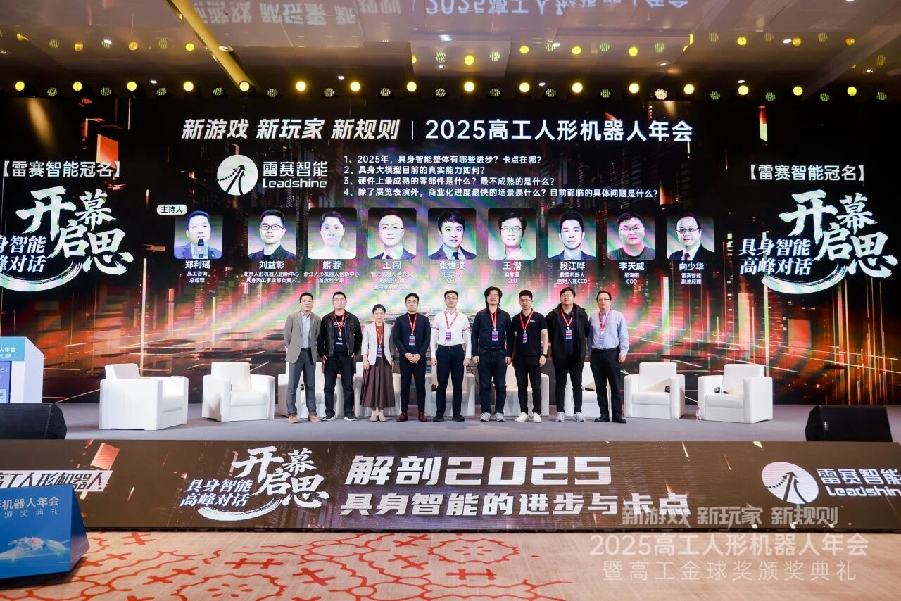 在年會伊始的“解剖2025,具身智能的進步與卡點”高峰對話中,雷賽智能與智元機器人、松延動力、星海圖、北京天工、自變量、戴盟機器人、浙江人形中心等產(chǎn)業(yè)鏈核心企業(yè)共聚一堂。與會各方一致認為,在產(chǎn)學(xué)研資及政府各界的合力推動下,人形機器人產(chǎn)業(yè)已邁入商業(yè)化元年,前景廣闊,未來的機會與挑戰(zhàn)聚焦于商業(yè)落地、大模型優(yōu)化、本體技術(shù)收斂、核心零部件降本與穩(wěn)定性、系統(tǒng)方案等領(lǐng)域。面對工業(yè)、商業(yè)及家庭服務(wù)等多元化場景的精準需求,人形產(chǎn)業(yè)已進入“場景驅(qū)動硬件定義”的新階段。