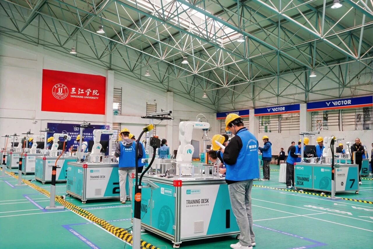 大賽以“智能制造,驅(qū)動(dòng)未來”為主題,設(shè)置創(chuàng)新賽道與應(yīng)用賽道,聚焦人形機(jī)器人、復(fù)合機(jī)器人、協(xié)作機(jī)器人及工業(yè)機(jī)器人等前沿方向,全面考察學(xué)生在語義識(shí)別、視覺抓取、焊接、打磨等復(fù)雜場(chǎng)景中的技術(shù)應(yīng)用與工程實(shí)踐能力。賽事通過創(chuàng)新+實(shí)踐相結(jié)合的考核模式,推動(dòng)“以賽促教、以賽促學(xué)、以賽促創(chuàng)”的深度融合,為智能制造與機(jī)器人領(lǐng)域的高素質(zhì)人才培養(yǎng)搭建了高水平實(shí)戰(zhàn)平臺(tái)。