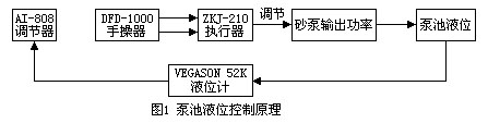 泵池液位自動控制功能的實現(xiàn),是由VEGASON52K液位計將檢測到的液位信號,轉(zhuǎn)換成4-40mA的電流輸出信號,經(jīng)電阻進(jìn)到調(diào)節(jié)器,調(diào)節(jié)器作數(shù)據(jù)分析處理后,根據(jù)控制功能參數(shù)的設(shè)置要求,驅(qū)動中間繼電器1ZJ或者2ZJ,控制ZKJ-210執(zhí)行機(jī)構(gòu)的正、后轉(zhuǎn),調(diào)節(jié)砂泵液力耦合器的油量,從而達(dá)到增大或減少砂泵輸出功率,穩(wěn)定泵池液面的目的。