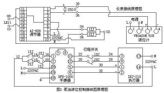 泵池液位自動控制和接線原理分別如圖1、圖2所示