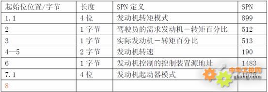 根據(jù)SPN參數(shù)定義我們就很容易知道發(fā)動機中的各種參數(shù)與狀態(tài)及實時測量值了。